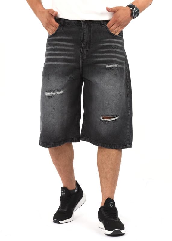 / شورت جينز بأرجل واسعة للرجال، رمادي فاتح