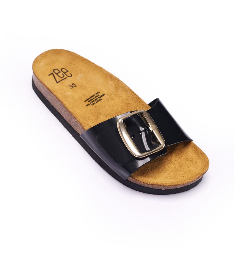 زد حذاء ابرازو كلاسيكي مع حزام علوي لامع إسباني واحد وإبزيم كبير كبير. نعل داخلي من الفلين الطبيعي الإسباني ونعل خارجي خفيف الوزن من مادة ايفا