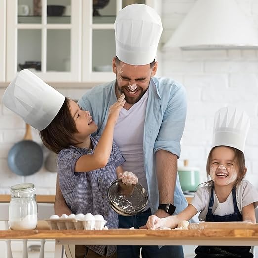 سيحب الأطفال الحصول على قبعة طاهٍ ورقية خاصة بهم أثناء تواجدهم في المطبخ. اجعل إعداد الوجبات والوجبات الخفيفة الصحية أمرًا ممتعًا مع قبعات الطهاة الورقية هذه للأطفال أو البالغين. كل غطاء أبيض مصنوع من ورق سميك عالي الجودة . المقاس: 23 × 29 سم/ 9 ×11.4 بوصة. يمكن تعديل قبعات الطهاة البيضاء للأطفال ببساطة عن طريق تمديد الجزء الخاص بشريط القبعة. استخدم الشريط اللاصق لتثبيتها. استخدم قبعات الطهاة الكلاسيكية أثناء فصل الطهي، أو قم يتوزيعها في حفل عيد ميلاد أحد الأطفال لتزيينها. سوف تحصل على قبعتان شيف بيضاء للأطفال أو البالغين في هذه المجموعة.