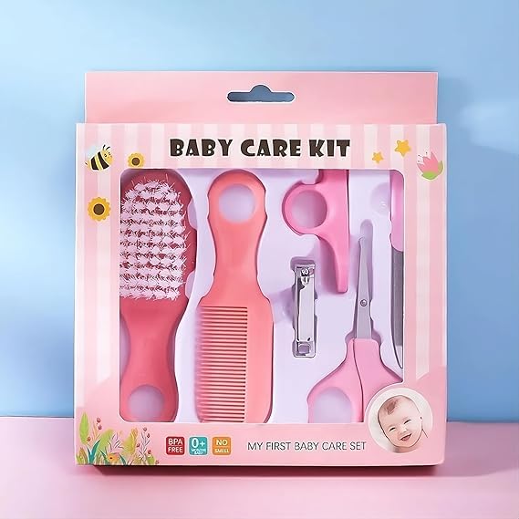 مجموعة العناية اليومية بالأظافر والشعر للأطفال مكونة من 6 قطع ومقص وفرشاة شعر ومشط للعناية بالأظافر لحديثي الولادة (بينك)، زهري