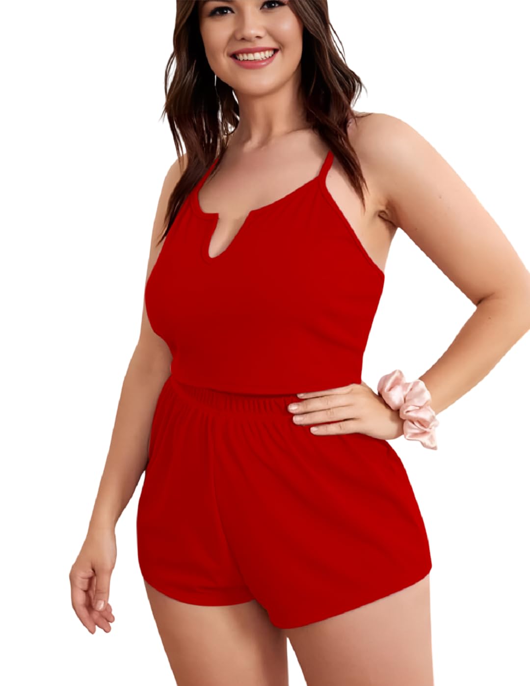 طقم بيجامة لانجيري هوت شورت للنساء بلون بينك