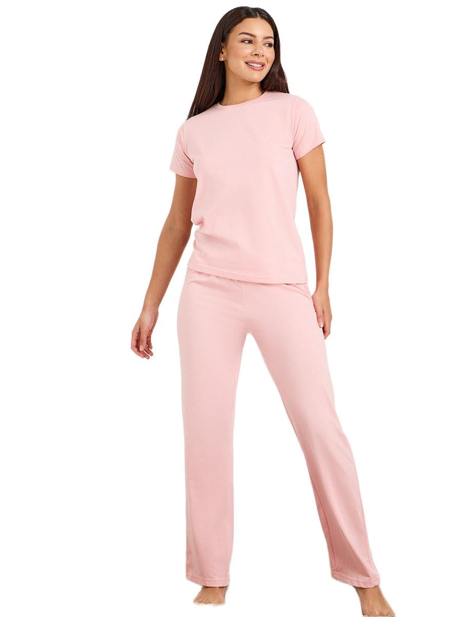 طقم بيجامة وتي شيرت قطن سادة للنساء من ستايلي