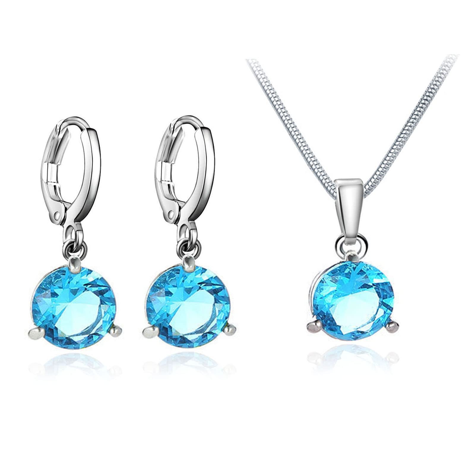 طقم مجوهرات مكون من عقد وقلادة على شكل قلب واقراط حجر الزركونيا المكعب للنساء mm أزرق سالاندا