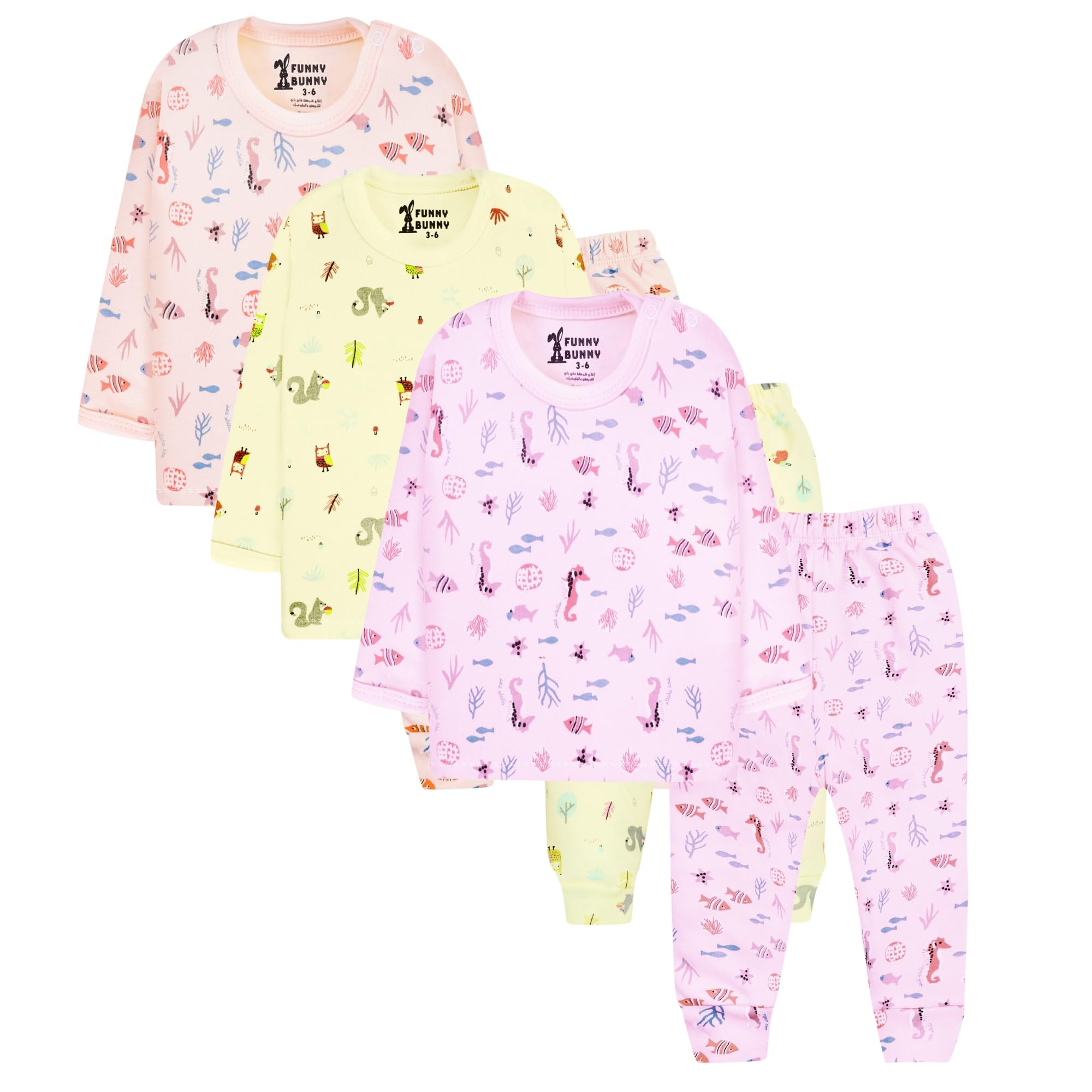 طقم ملابس داخلية بأكمام طويلة وبنطلون للأطفال من فاني باني، 3 قطع