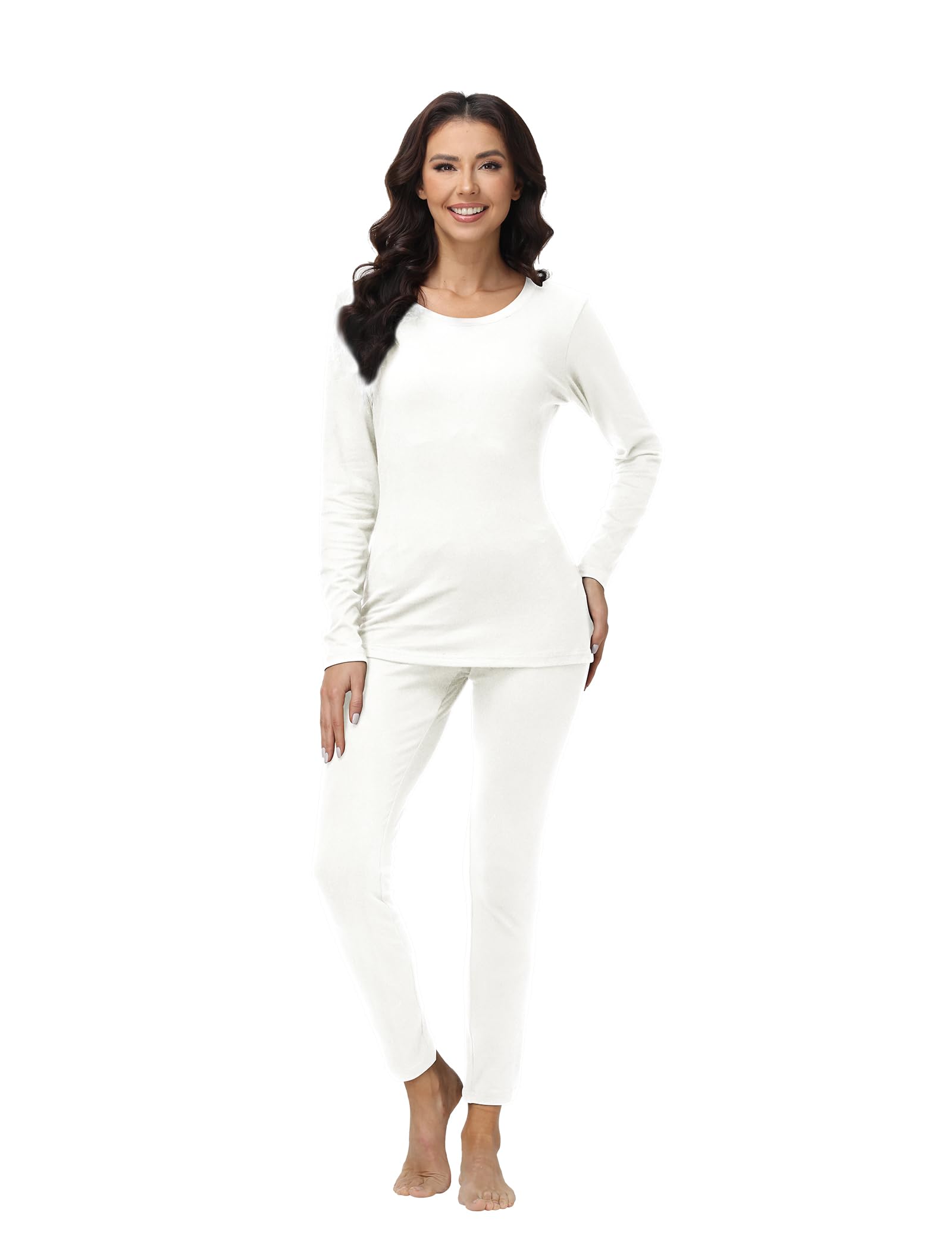 طقم ملابس داخلية حرارية منسوج بتصميم ضيق وأكمام طويلة للأجواء الباردة للنساء