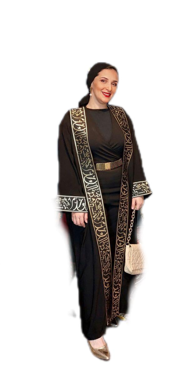 عباية للنساء بتصميم مفتوح متوسط الطول مزينة بشريط يحمل حروفًا من تاليا