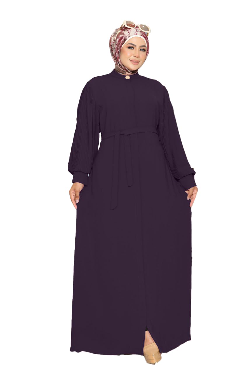 عبايه خروج كريب فيرونا بحزام و سحاب موديل 146 للنساء من GAMAL SONS FOR ABAYA