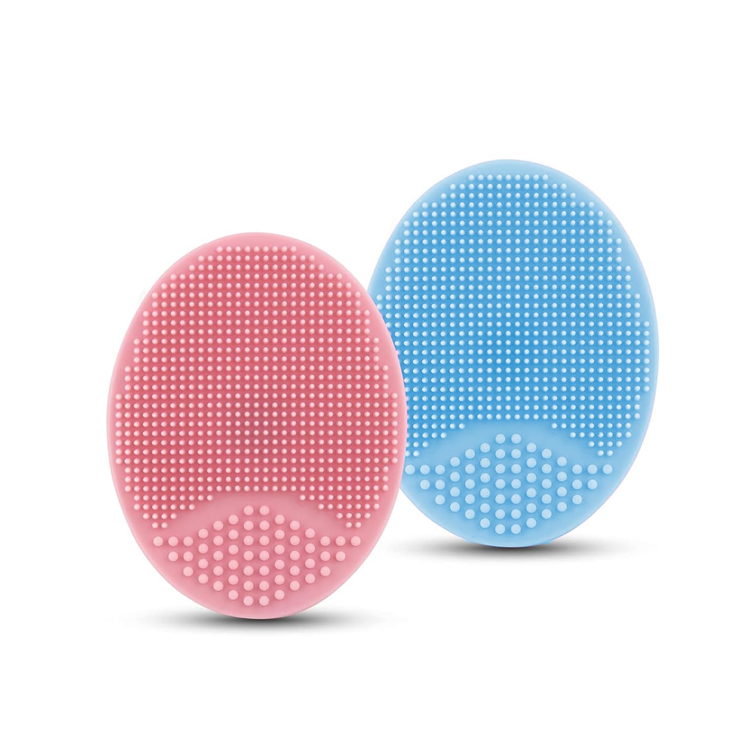 فرشاة سيليكون للاطفال من تول هاوس، فرشاة سيليكون للوجه بشعيرات ناعمة ومهدئ للبشرة، فرشاة لطيفة للاطفال حديثي الولادة والاطفال الصغار، مجموعة العناية بالطفل الاساسية (ازرق + بينك)