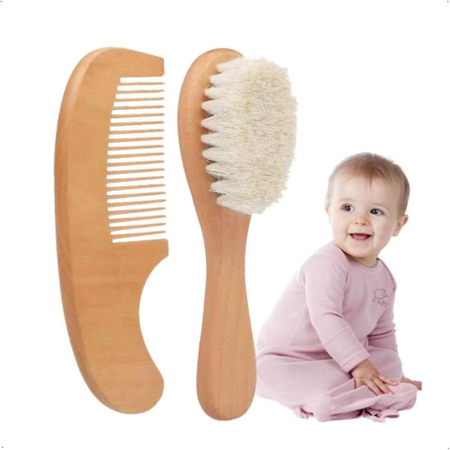 فرشاة شعر للاطفال من ابوتو، مجموعة من قطعتين من فرشاة ومشط بشعيرات الماعز الناعمة ومشط من خشب الكمثرى، عناية لطيفة بالشعر لحديثي الولادة والاطفال الصغار