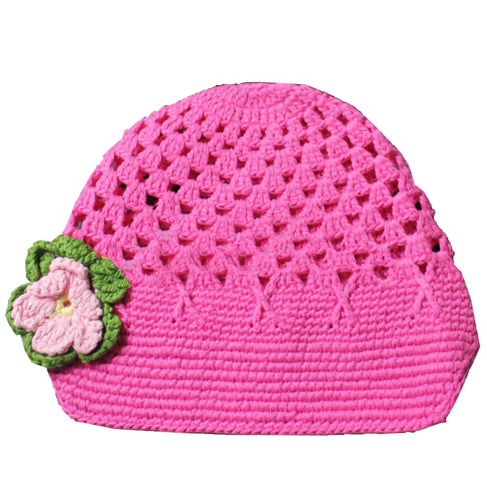 فروجويل قبعة صغيرة للبنات الصغيرات مصنوعة يدويا من الكروشيه والزهور مقاس M وردي