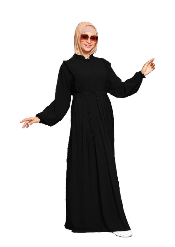 فستان حريمي واسع سادة بكسرات وزرار أمامي – لون أسود أنيق بتصميم محتشم وعصري مناسب للمحجبات GAMAL SONS FOR ABAYA GS-02-42434-Parent