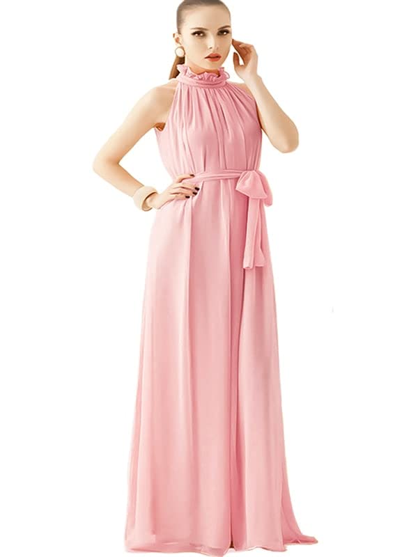 فستان شيفون طويل بدون اكمام، لون بينك للنساء