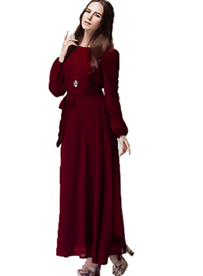 فستان شيفون طويل مبطن من الداخل بحزام وسط