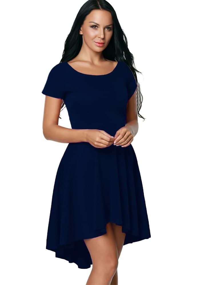 فستان قصير ايه لاين بقصة جيبة واسعة ومكشوف الكتفين للنساء، لون كحلي