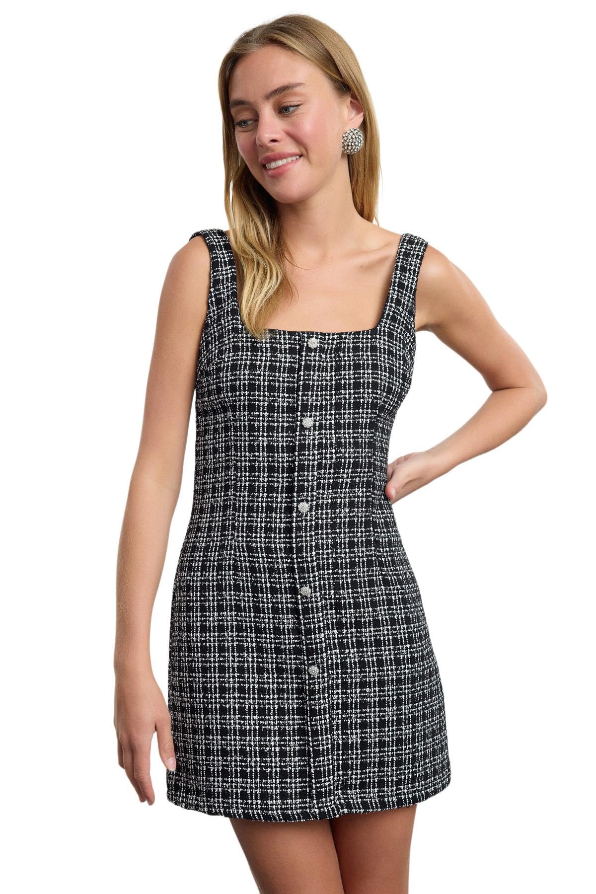 فستان قصير منسوج محبوك من التويد بلون أسود للنساء من ترينديول TPRAW25EL00076