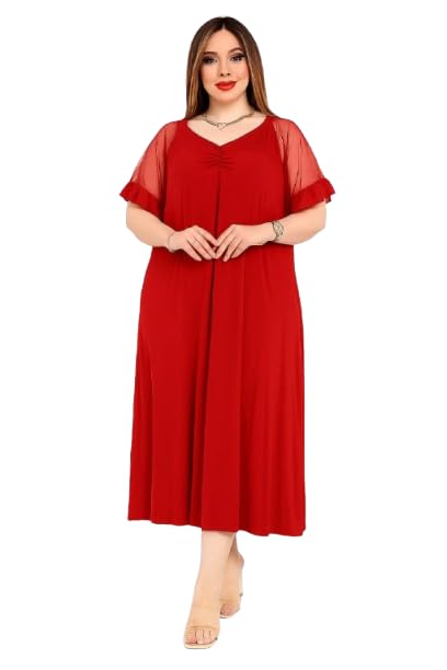 فستان لانجري بأكمام مكشكشة وقبة V بطول متوسط L115 من بيرفيكت فاشون، حتى 70 كيلوجرام