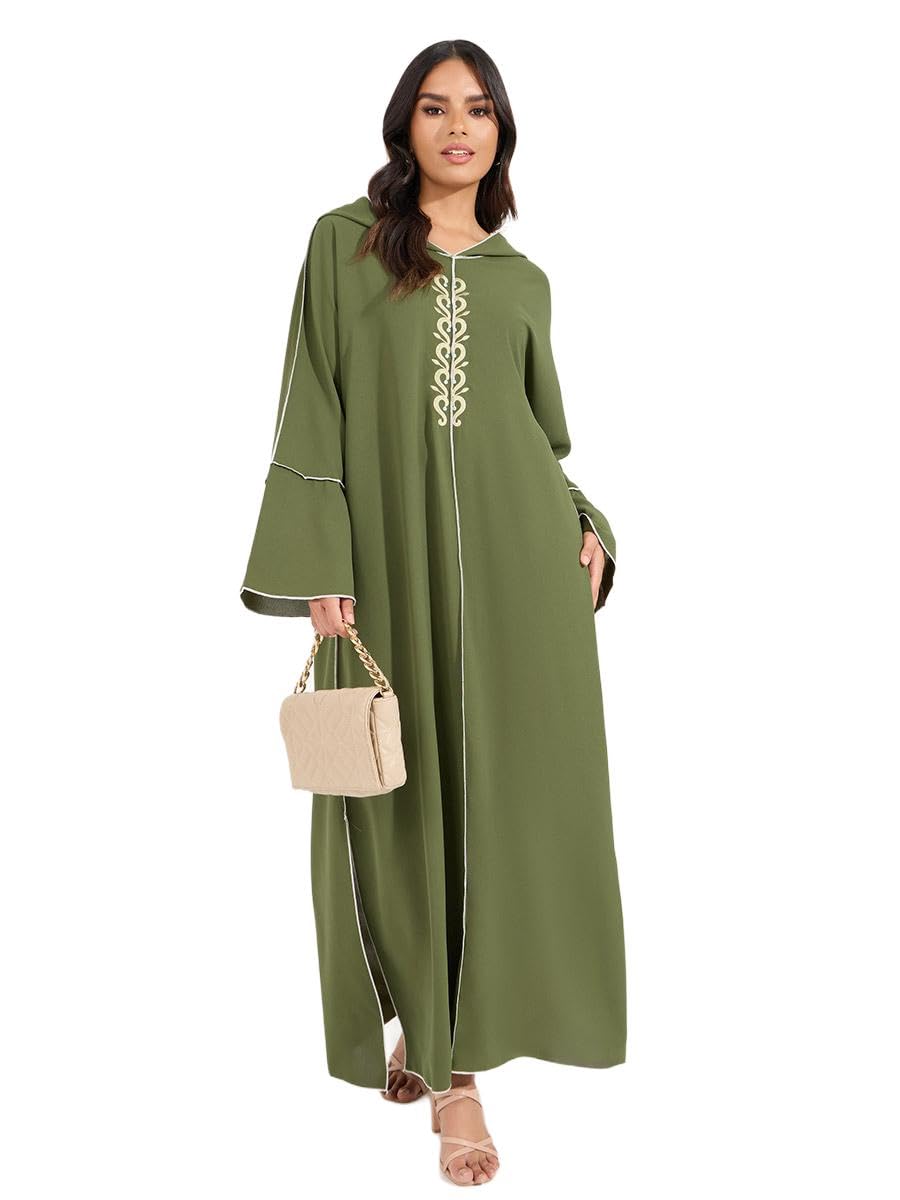 فستان ماكسي بغطاء للرأس من مزيج قطني مطرز للنساء من ستايلي