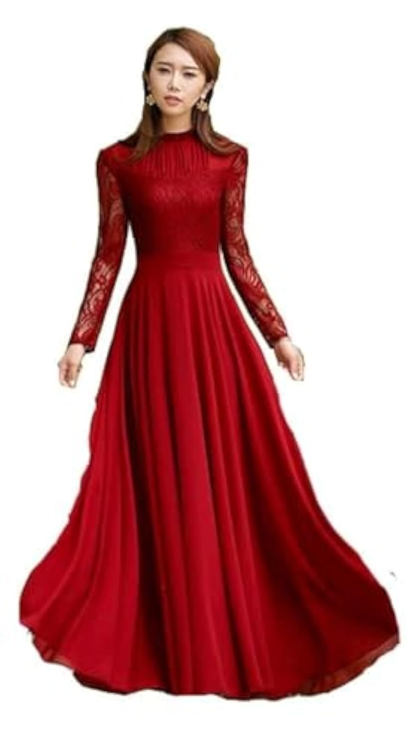 فستان نسائى أحمر دانتيل و شيفون ببطانة