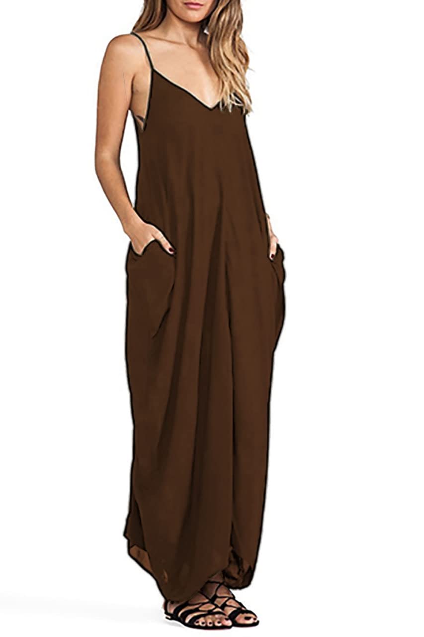 فستان نسائى قطن بحمالات من الاكتاف لون بني