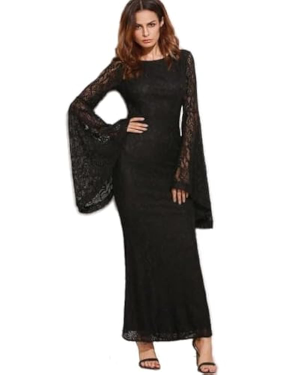 فستان نسائي طويل من الدانتيل ببطانة سوداء