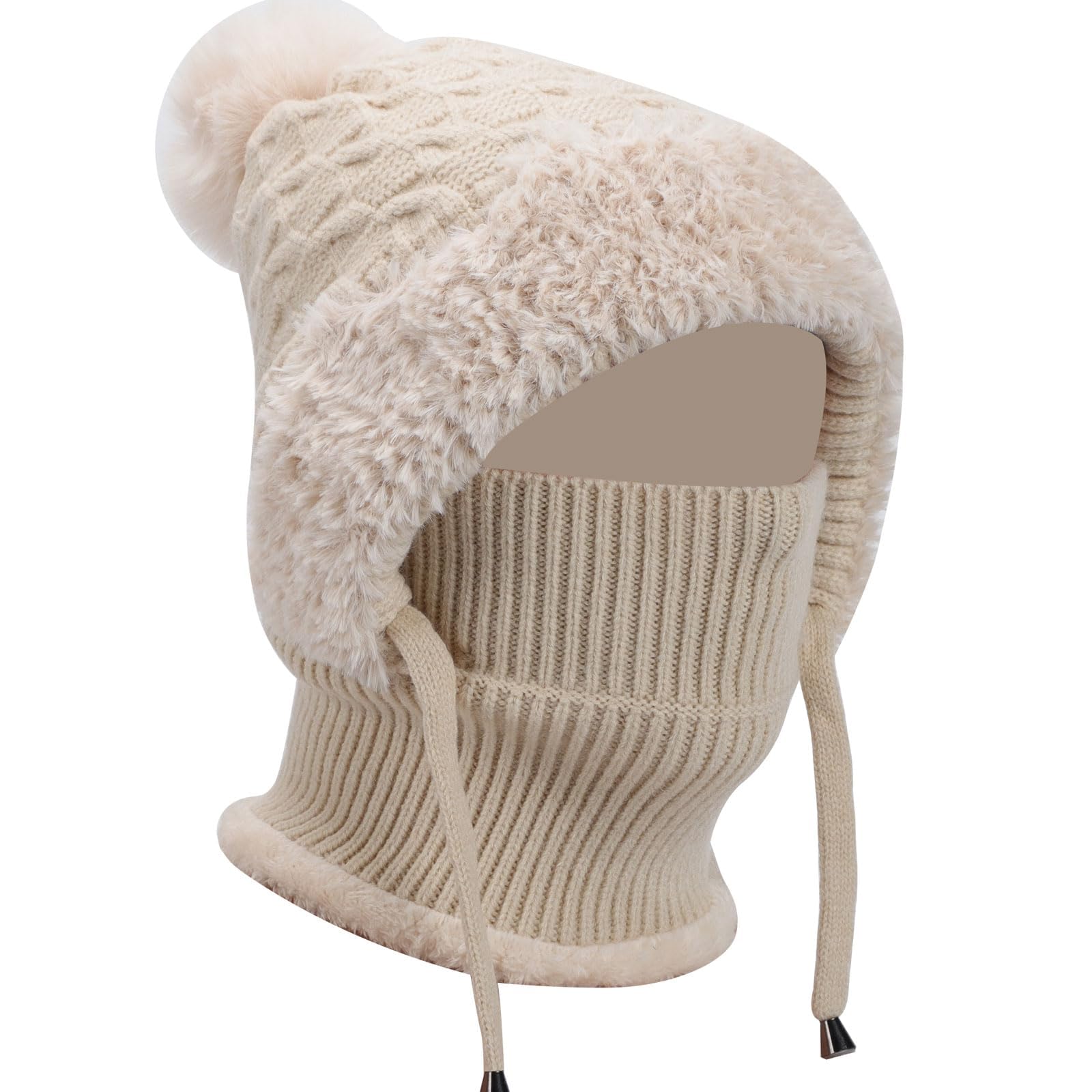 قبعة شتوية مبطنة بالصوف 3 في 1 للنساء – قبعة شتوية 3 في 1 مبطنة بالصوف للنساء | قبعة بالاكلافا محبوكة دافئة، غطاء راس وقناع وجه للسفر في الطقس البارد