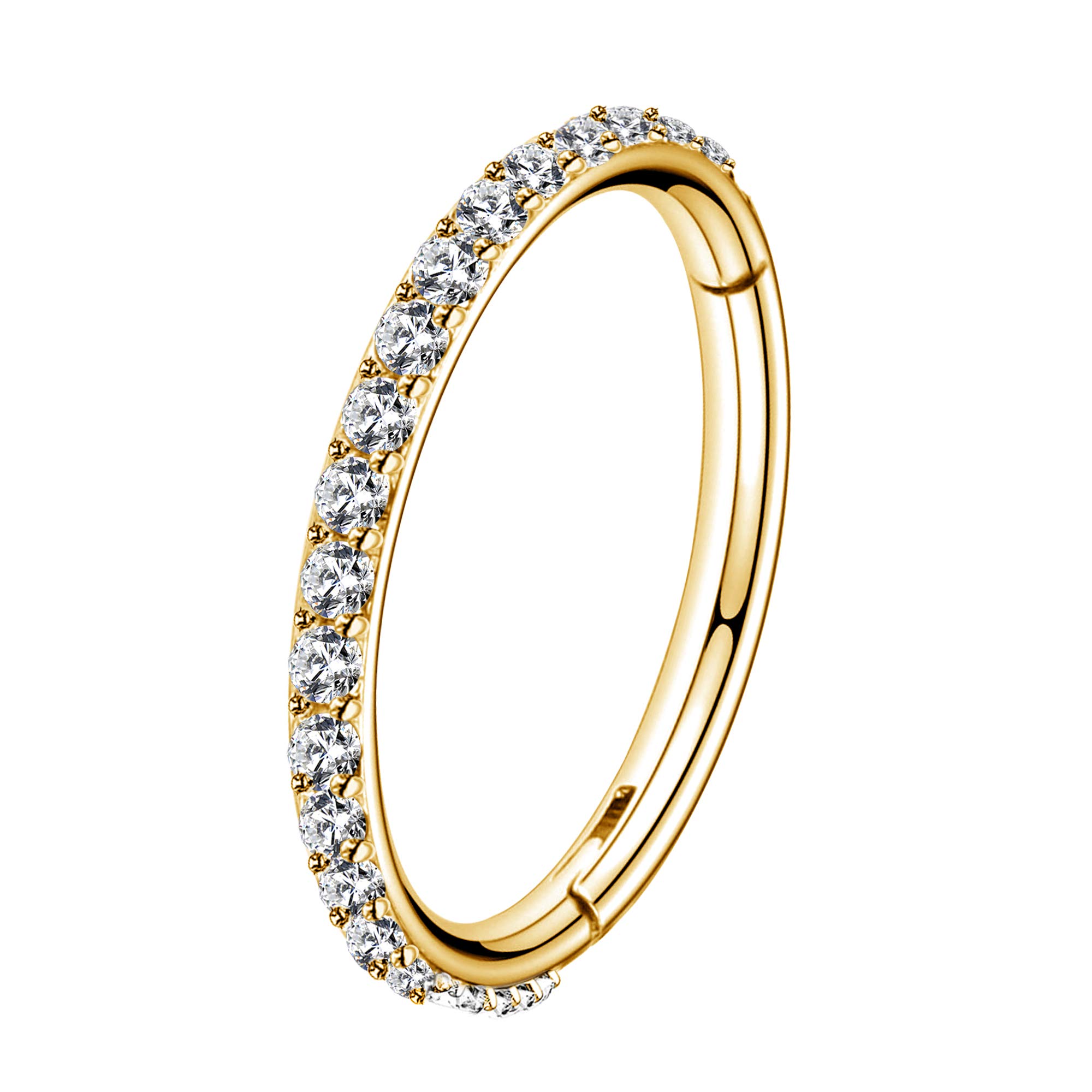 قرط ذهبي بمفصلات من اوفر 16 غرام من الستانلس ستيل مع اقراط غضروف شفافة سي زي مرصعة، اقراط لولبية للانف والاذن