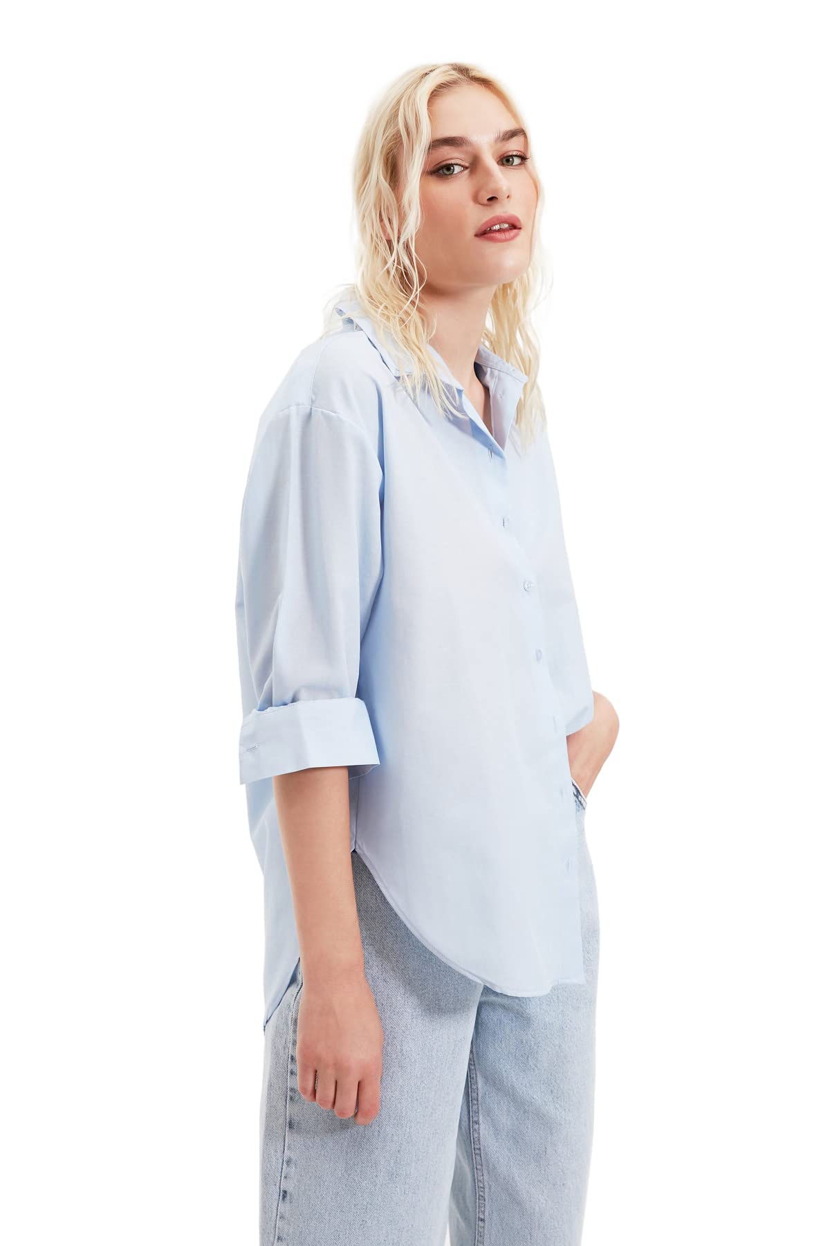 قميص بنسيج محبوك TWOAW20GO0107 للنساء بقصة واسعة من القطن المنسوج من ترينديول (عبوة من قطعة واحدة)