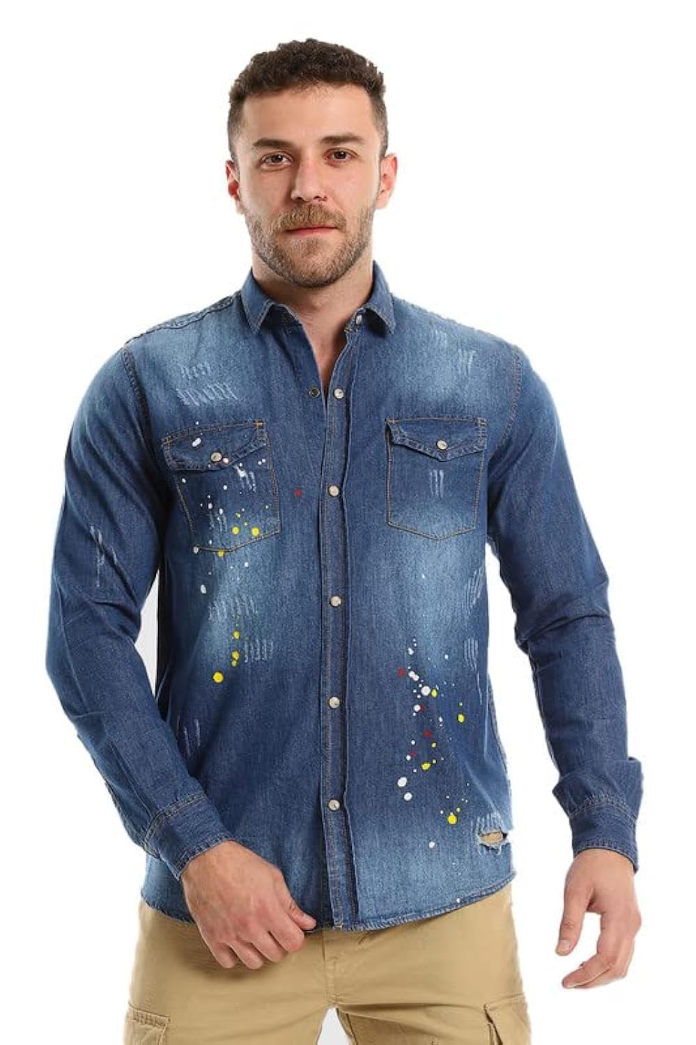 قميص جينز رجالي باكمام طويلة وازرار كبس من وايت رابيت