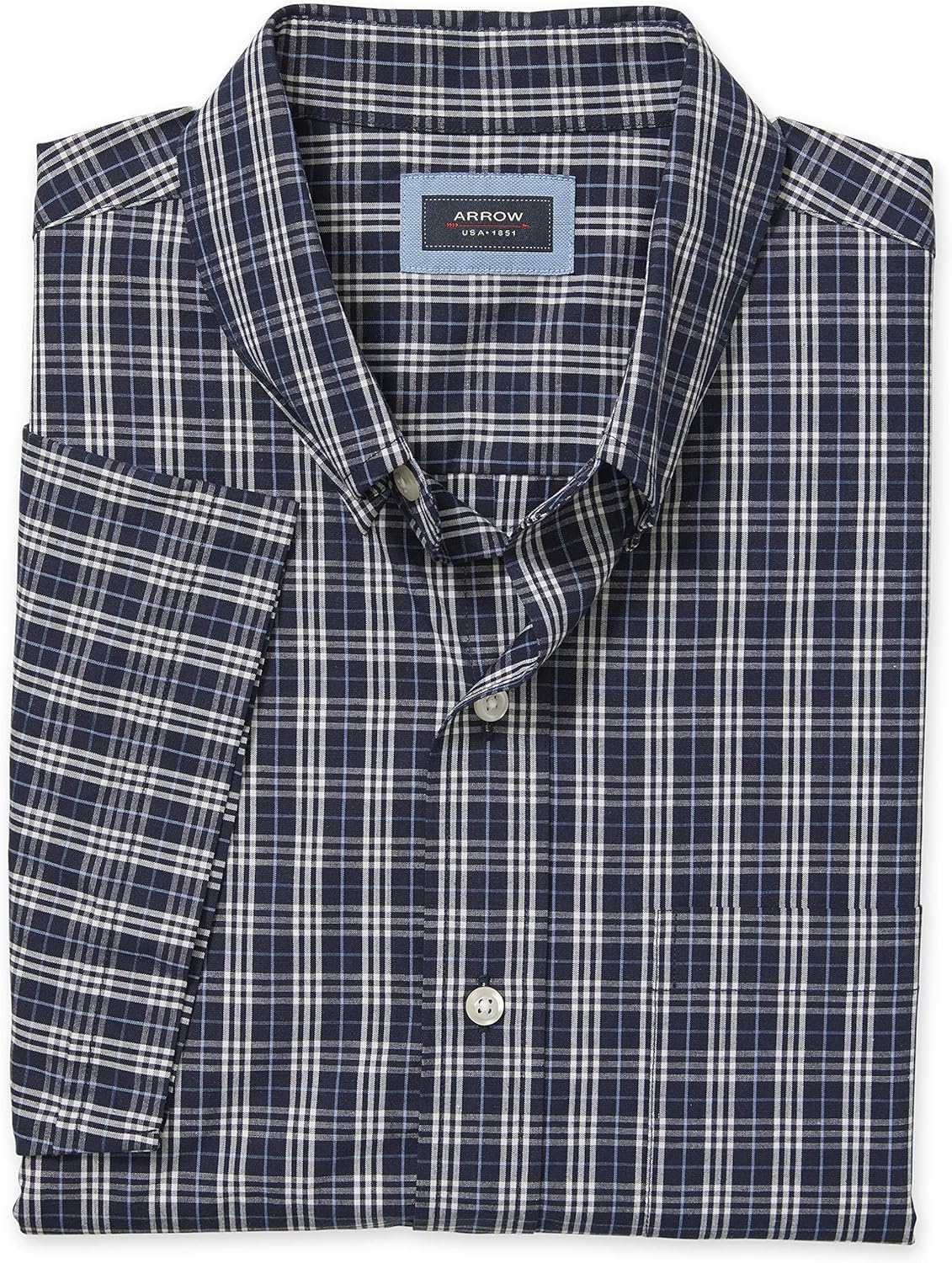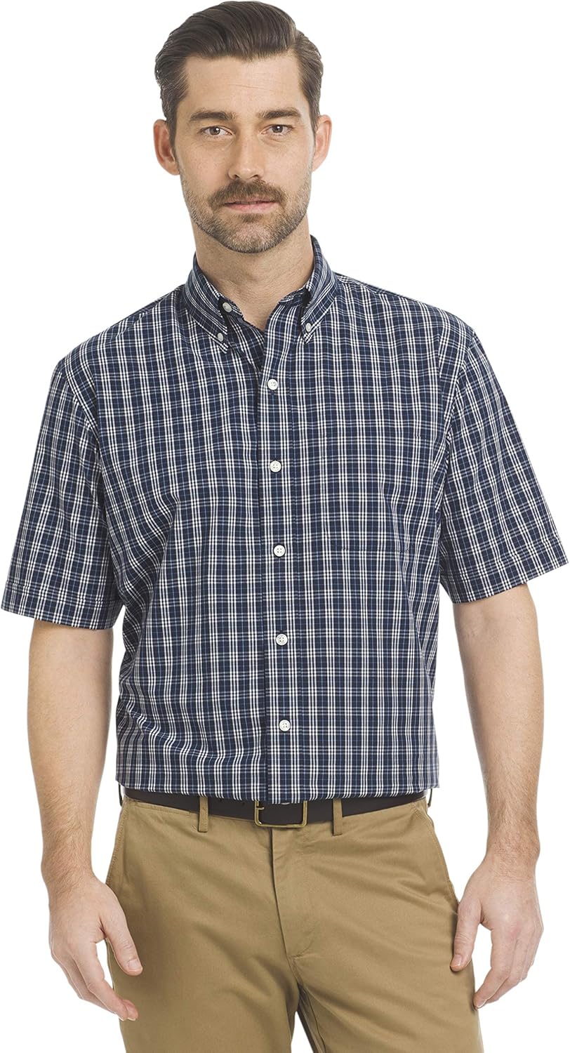 قميص هاميلتون بوبلينز كبير وطويل باكمام قصيرة وازرار كاملة للاسفل للرجال من ارو