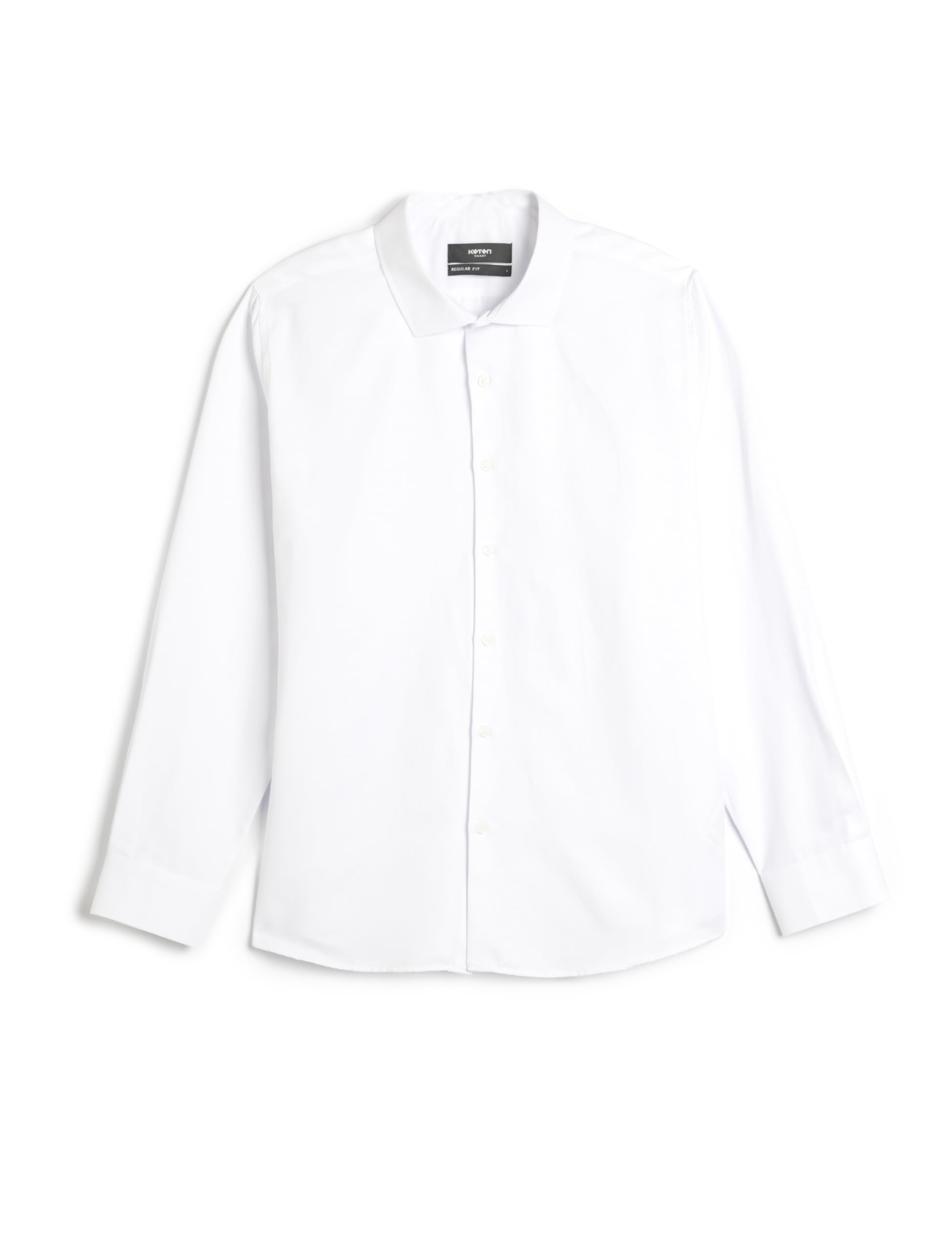 قميص كلاسيكي من مزيج القطن بأكمام طويلة وأزرار ونصف رقبة إيطالية.
