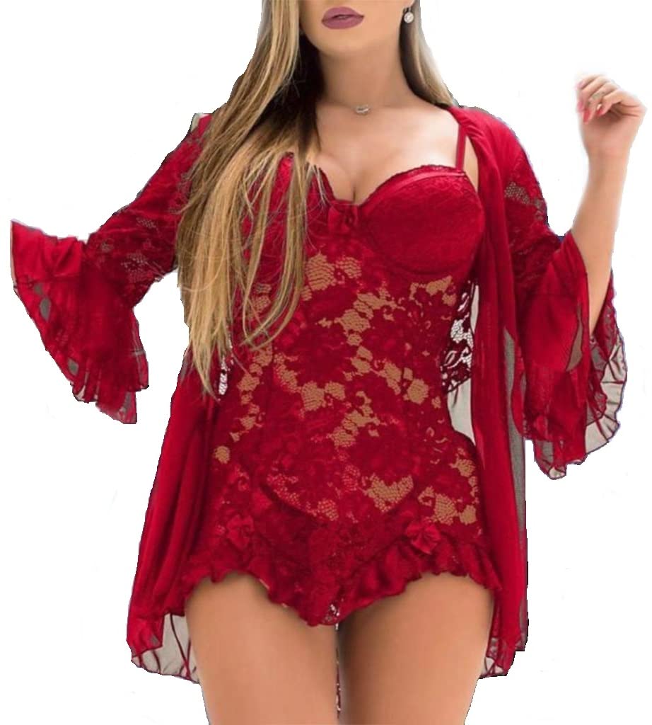 لانجيري احمر قصير سكسي شفاف للنساء، موديل جديد من فور اتش، كود 9
