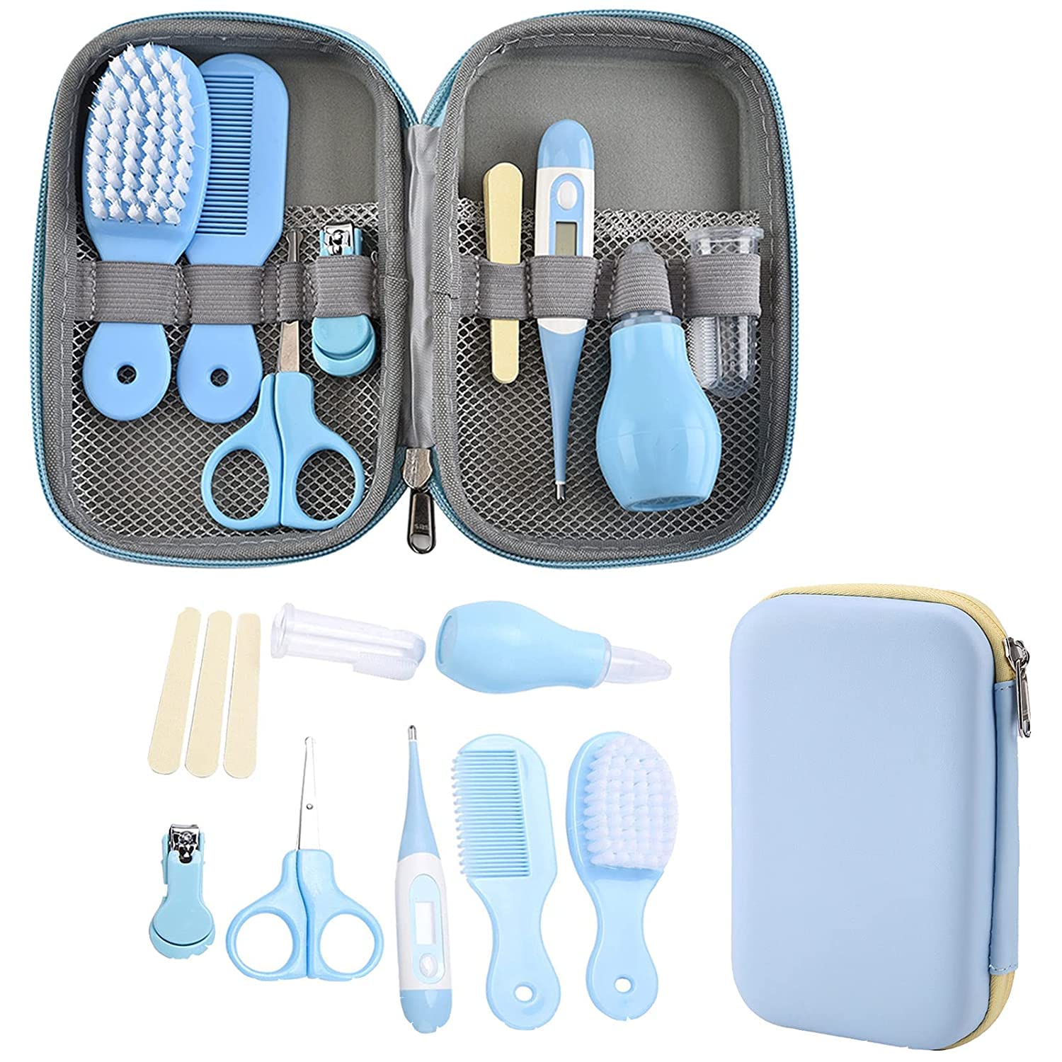 مجموعة ادوات تجميل للاطفال من الميكاكو فرشاة شعر الطفل 8 في 1 العناية بالطفل مستلزمات قصافة اظافر منظف خرطوم للعناية بجسم أزرق