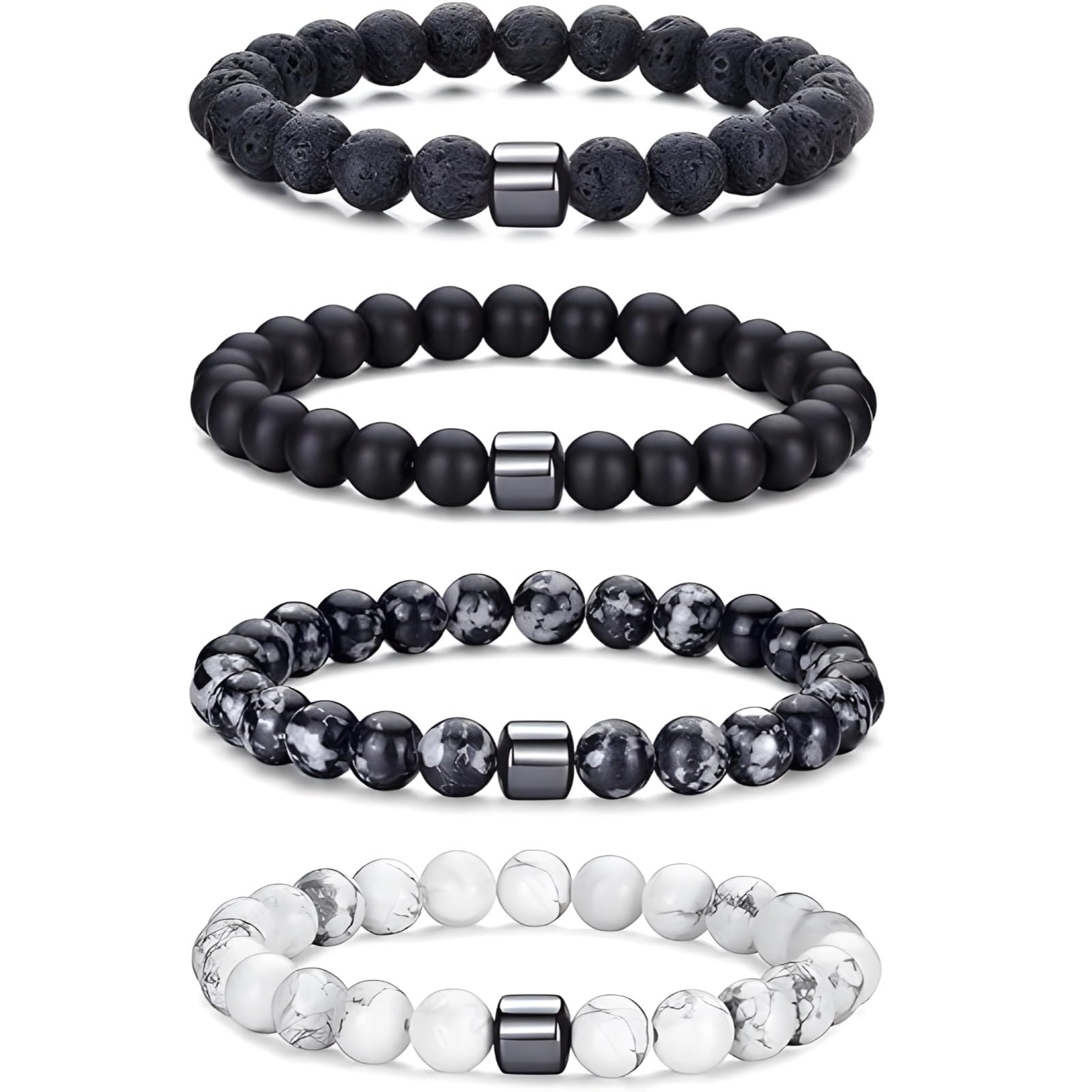 مجموعة اساور قابلة للتمدد من 4 قطع من حجر اللافا والخرز الطبيعي للرجال والنساء، مجموعة اساور بليسينجز من خليط معدني للهدايا والارتداء اليومي