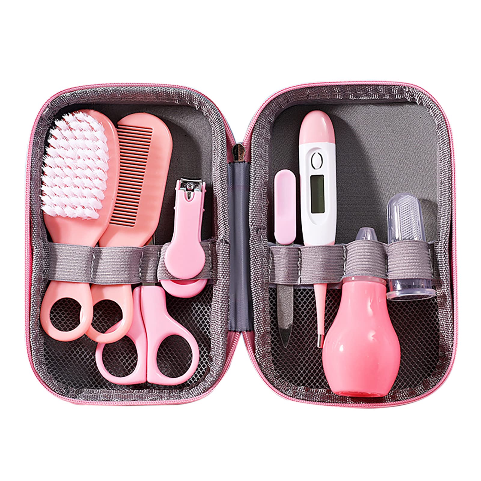 مجموعة عناية بصحة الطفل تتضمن قصافة أظافر محمولة وفرشاة شعر وترمومتر وشفاطة تنظيف أنف وفرشاة أسنان