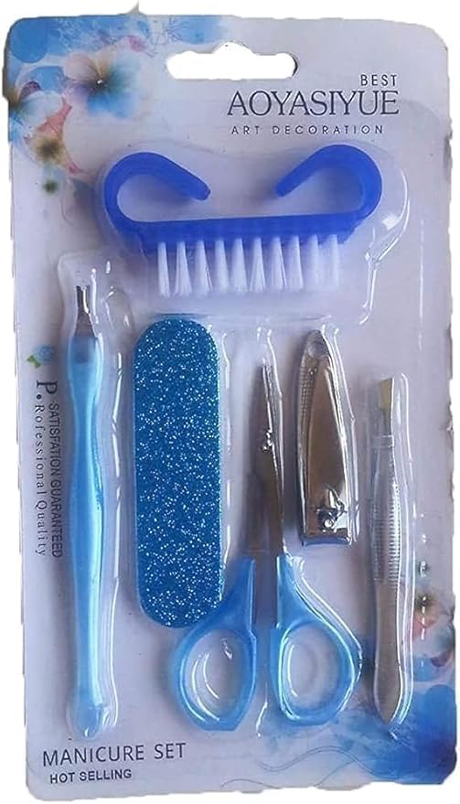 مجموعة مانيكير وباديكير للنساء مكونة من 6 قطع، مجموعة العناية بالاظافر من الستانلس ستيل، فرشاة اظافر، مقص، ملمع للاظافر، مزيل الزوائد اللحمية وملقط، المحمولة لون لبنى
