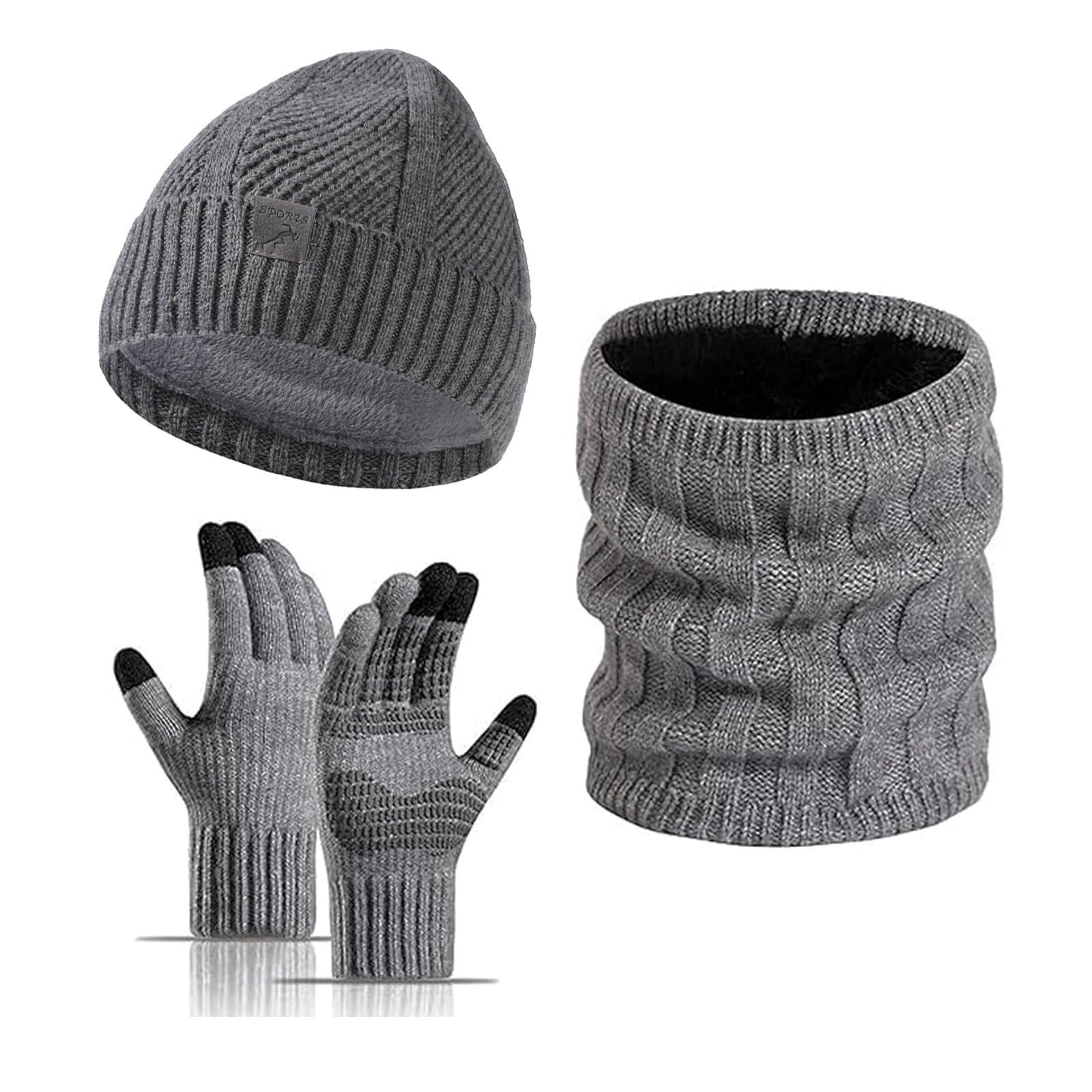 مجموعة من 3 قطع قبعة صغيرة شتوية ووشاح وقفازات تعمل باللمس مع بطانة سميكة من الصوف للرجال والنساء من لينجي