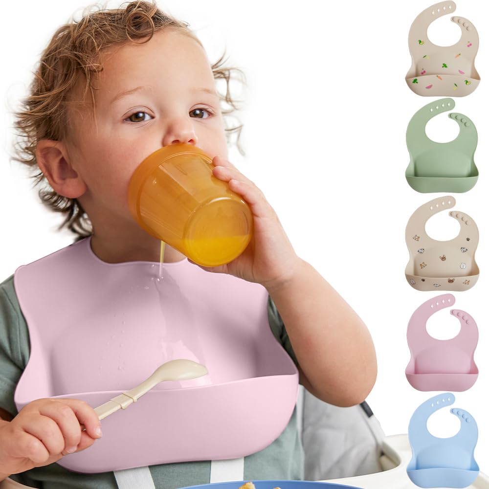 مريلة أطفال من السيليكون من مايتي مونكي مقاومة للماء بجيب عميق للغاية وخالية من البيسفينول ايه وأمنة للطعام وقابلة للتعديل ولا تسبب الفوضى