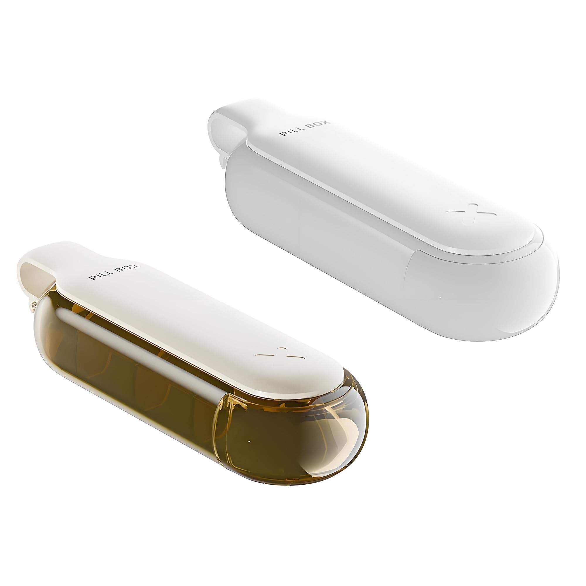 منظم حبوب دواء صغير للسفر مكون من قطعتين – حافظة حبوب صغيرة بـ4 جرعات للفيتامينات والادوية والمكملات الغذائية (ابيض ومشمش)