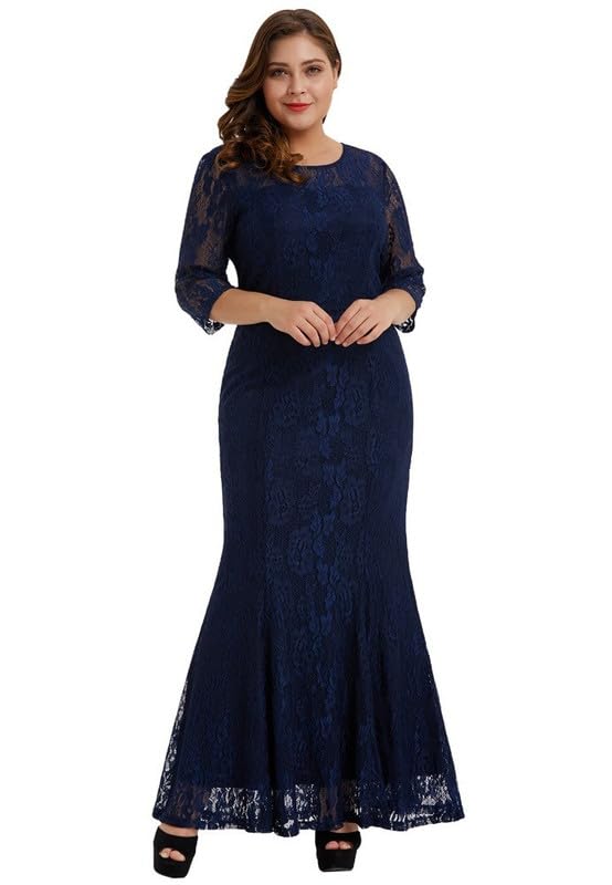 نسائي فستان طويل من الدانتيل ببطانة