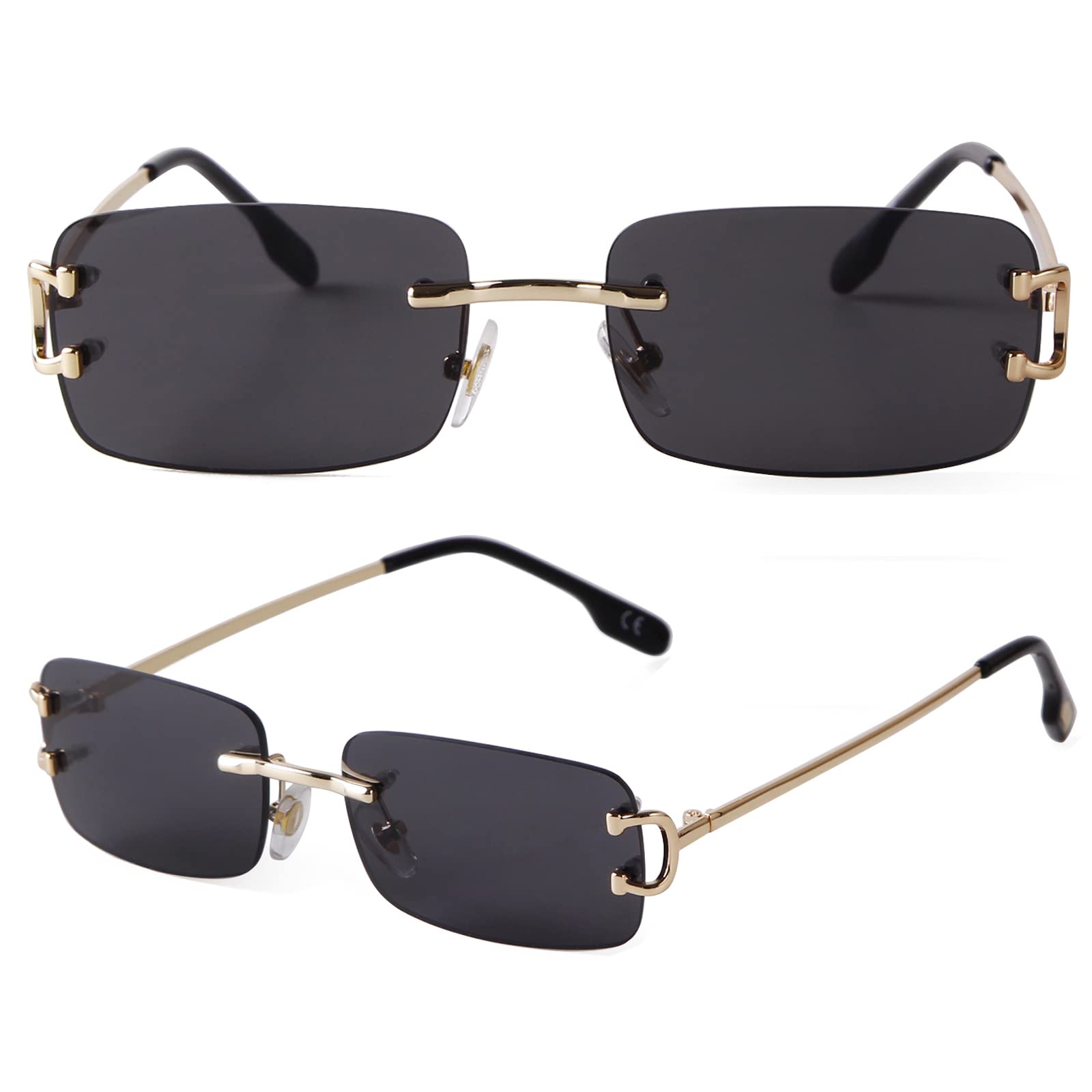 نظارة شمسية صغيرة مستطيلة بدون إطار بحافة ضيقة بنمط التسعينيات بعدسات ملونة مناسبة للرجال والنساء من SDinm