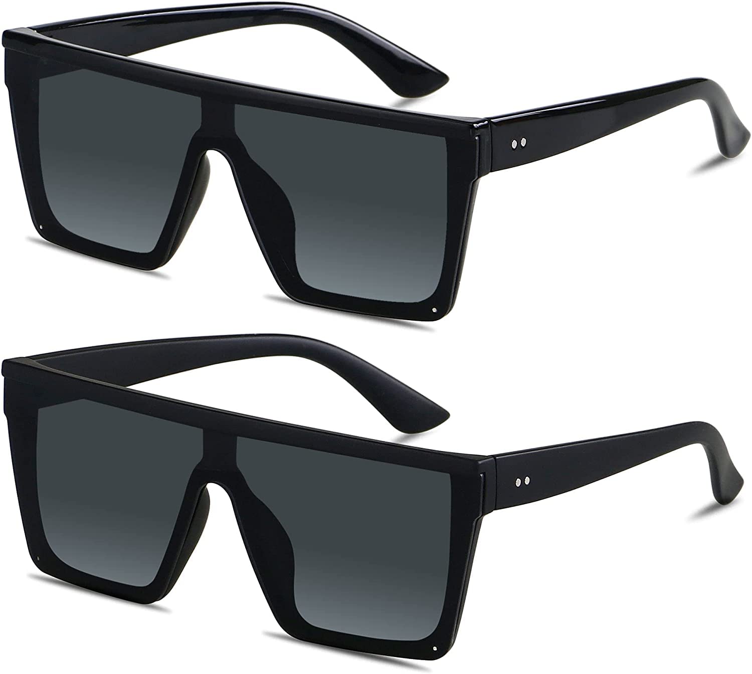 نظارة شمسية مربعة كبيرة الحجم للنساء والرجال قطعتين للحماية من الاشعة فوق البنفسجية ومضادة لاجهاد العين بجزء علوي مسطح كبير بدون اطار للقيادة والسفر أسود +