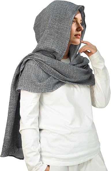 وشاح بقلنسوة للنساء والرجال، وشاح شال عصري مع غطاء رأس، تدفئة الرقبة متعدد الوظائف، قناع الوجه والرقبة جيد التهوية للاستخدام في الهواء الطلق والحفلات التنكرية والازياء الكلاسيكية، رمادي