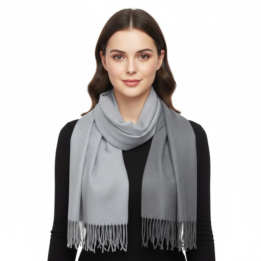 وشاح كشمير للنساء، وشاح صوف للسيدات، وشاح شتوي سميك كبير الحجم من الباشمينا، شالات دافئة كبيرة، لون سادة لفستان السهرة والزفاف وهدية وصيفات العروس (2 لون رمادي، 78 انش × 25 انش)