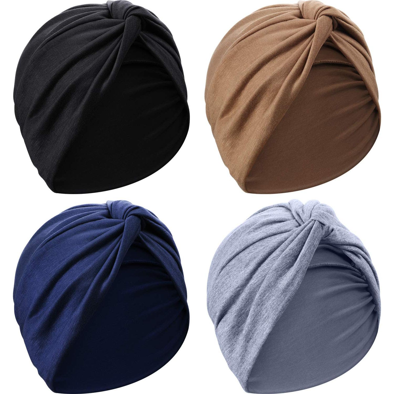 4 قطع تربون للنساء، قبعة ناعمة مربوطة مسبقا بتصميم عقدة عصرية بكسر، قبعة للنوم للمرأة مريضة السرطان