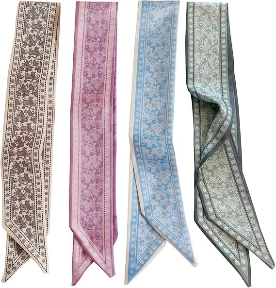 4 قطع وشاح شعر ساتان للنساء، اوشحة راس بوهو حريرية خفيفة الوزن، وشاح محفظة متعدد الاستخدامات لشنط اليد، اوشحة ساتان ناعمة للشعر والرقبة او المعصم، تصميم بوهيمي عصري، مناسب للارتداء اليومي