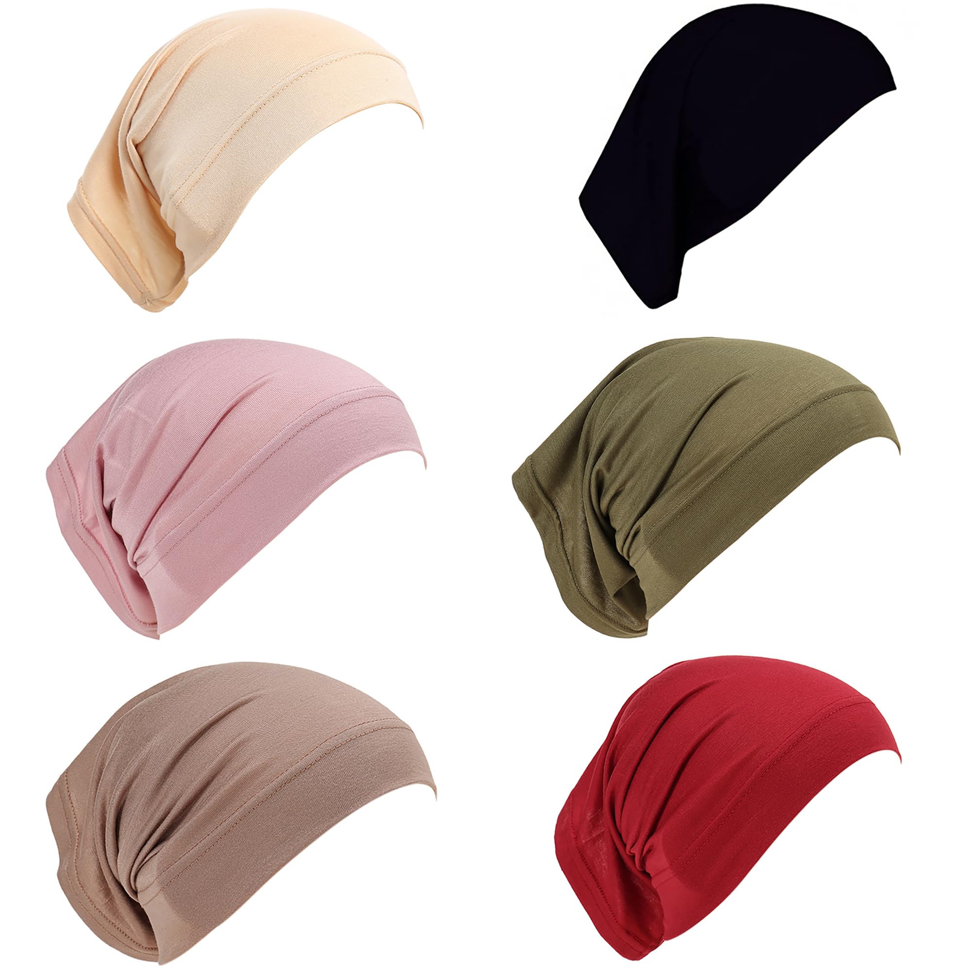 6 قطع من قبعات الحجاب القابلة للتمدد تحت الوشاح للنساء، قبعة حجاب اسلامية اسلامية تحت القبعات للحجاب بونيه، قبعة رأس، مقاس واحد، الوان متنوعة