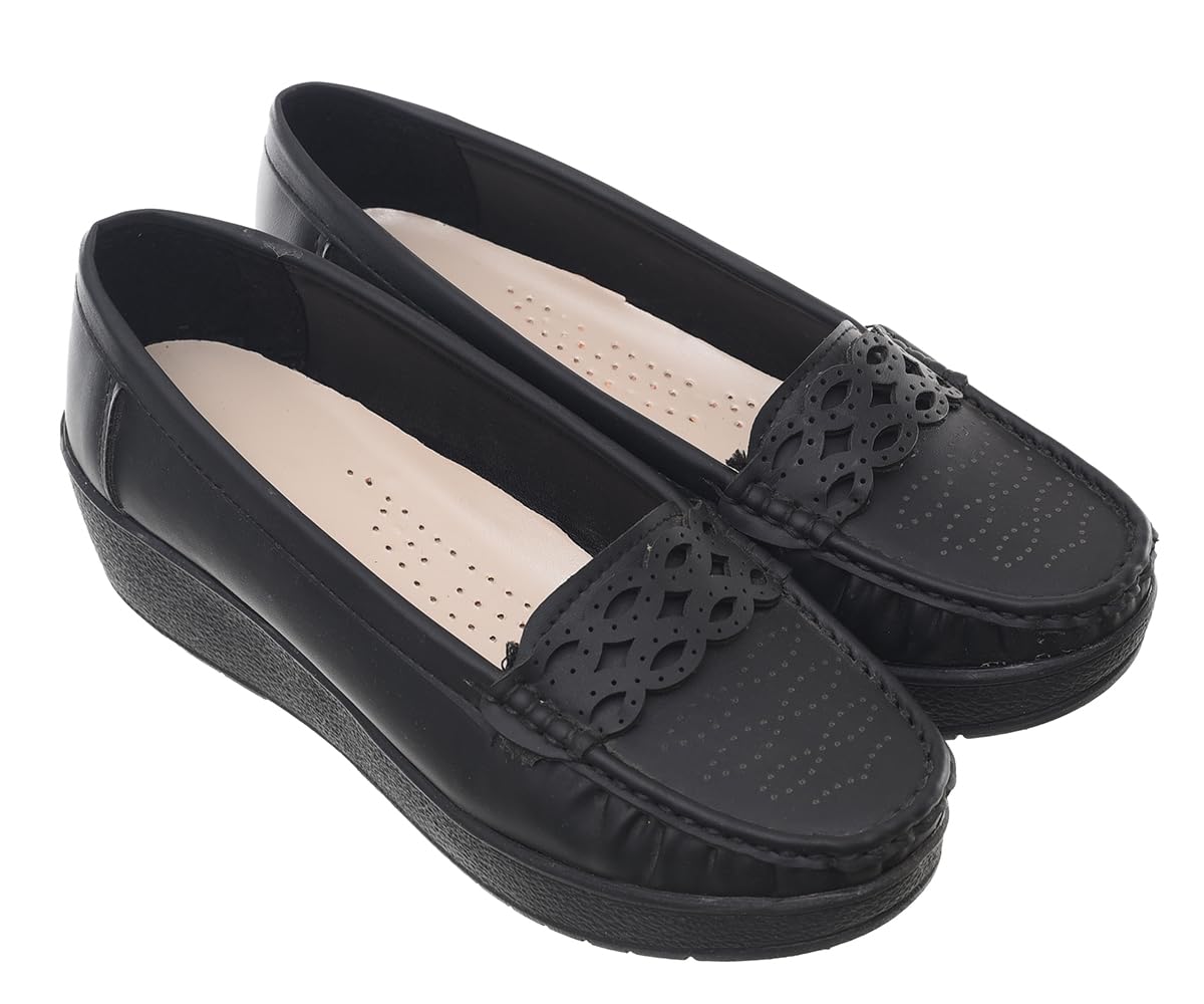 These elegant women’s leather loafers combine timeless style with all-day comfort. Crafted with a classic moccasin silhouette, these shoes feature beautiful decorative embroidery on the front that adds a touch of sophistication to any outfit. The perforated leather upper provides breathability, keeping your feet comfortable throughout the day. Designed with a practical low wedge heel and platform sole, these loafers offer gentle elevation whilst maintaining stability and ease of movement. The slip-on design makes them effortlessly convenient for busy mornings, whilst the cushioned insole ensures lasting comfort whether you’re running errands or enjoying a casual day out. The durable rubber outsole provides reliable traction on various surfaces. These versatile shoes pair beautifully with trousers, skirts, or casual dresses, making them a wardrobe essential that transitions seamlessly from day to evening. The neutral tan colour complements a wide range of outfits and styles. Perfect for women seeking comfortable yet stylish footwear that doesn’t compromise on quality or design.