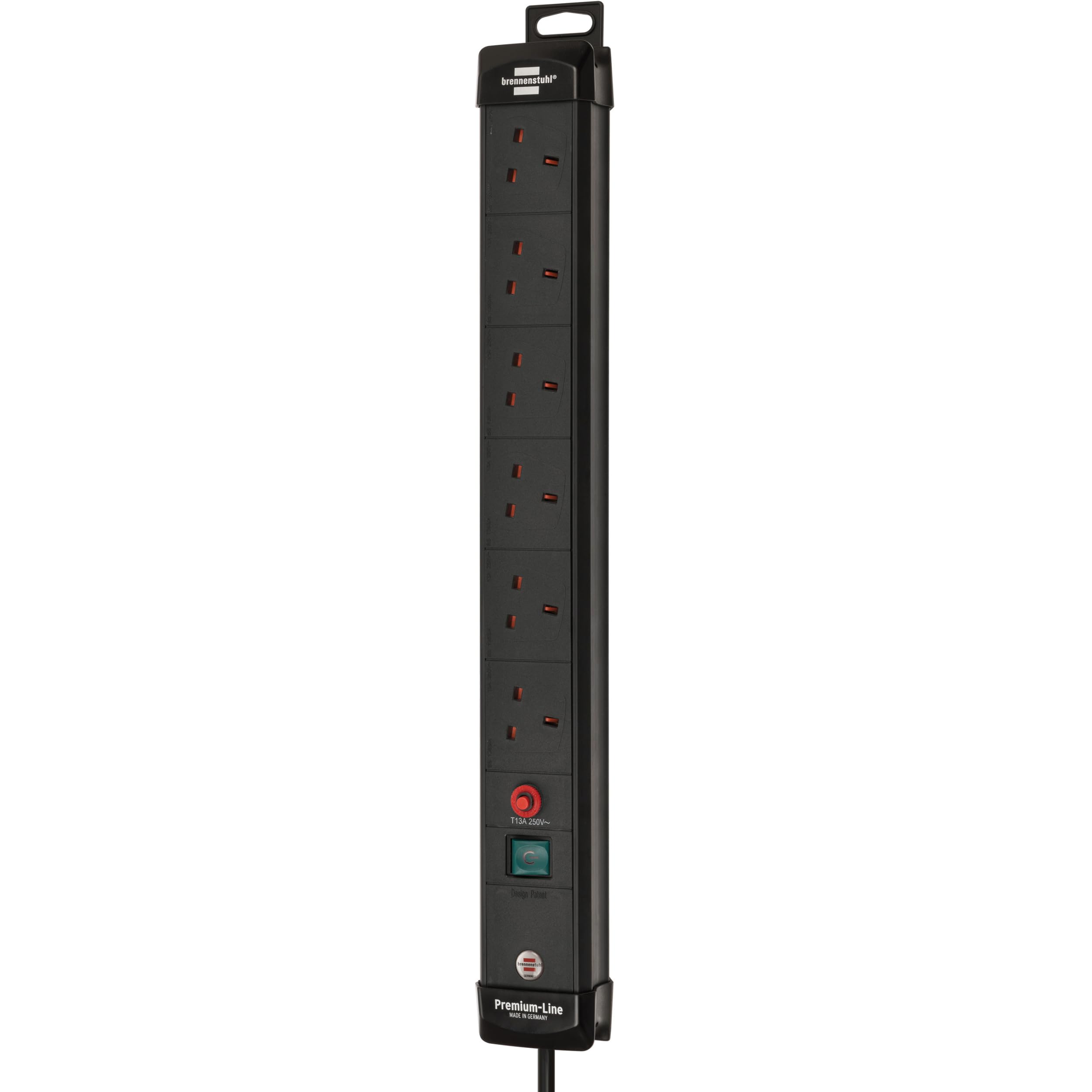 Brennenstuhl Premium-Line 6-way Extension Socket with On/Off Switch and Safety Fuse Button, long 3m cable for large rooms, H05VV-F3G1,5 black with 13A Fuse