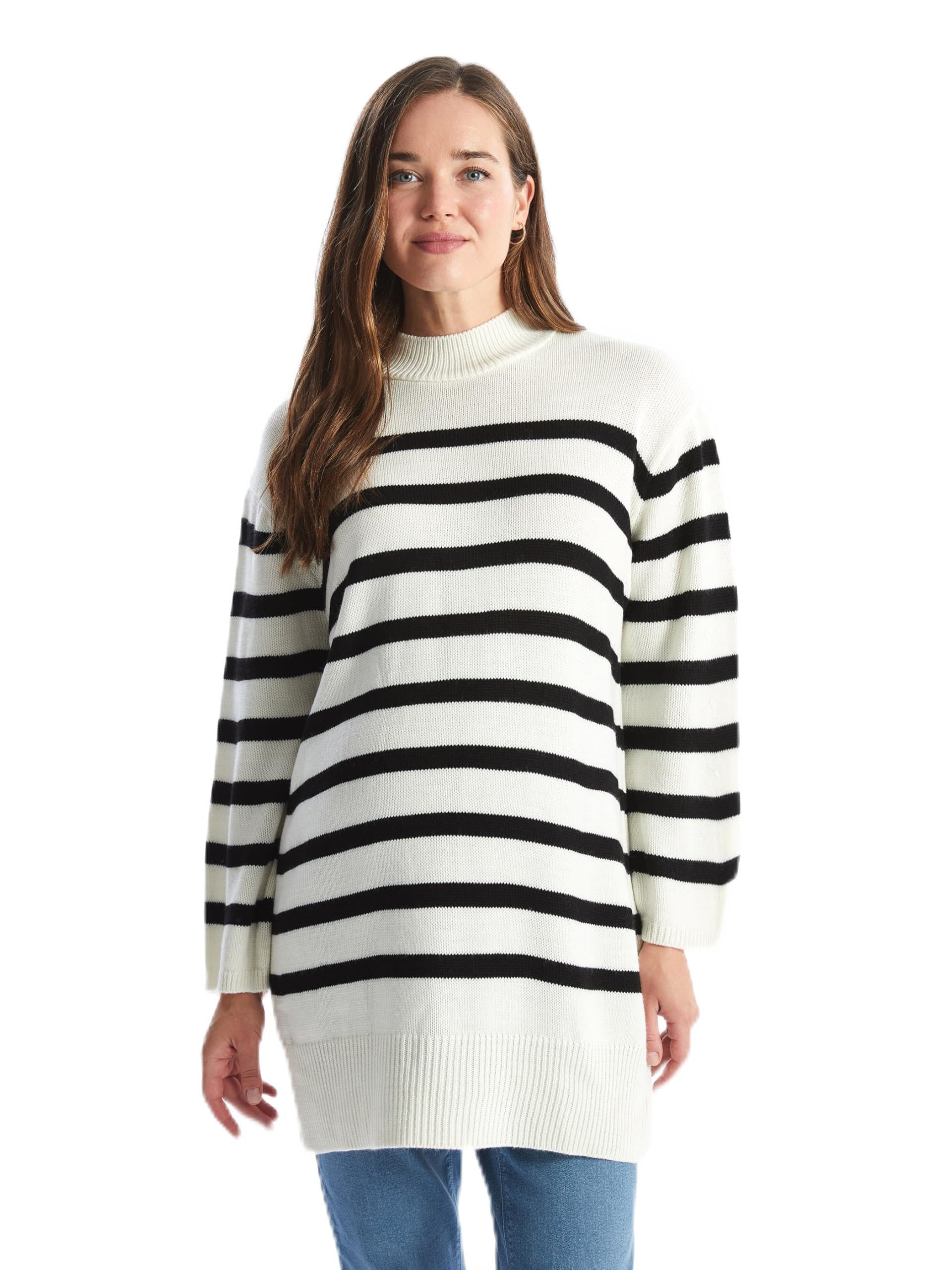 LC واكيكي تونيك تريكو مخطط برقبة على شكل قمع للنساء مقاس كبير