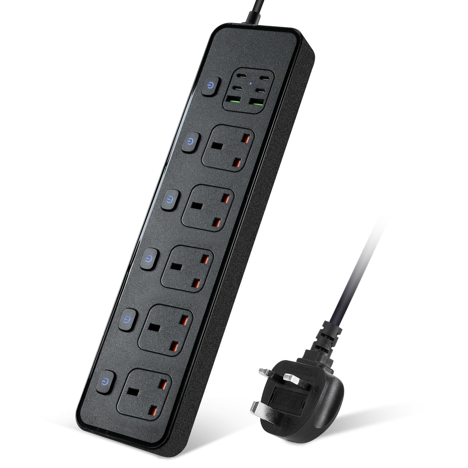 Lylilidy Power Board Individual Switches, 3M Extension Cord Power Strip with 5 AC Outlets, 2 USB A and 4 USB C PD30W Super Fast Charging, Wall Mount Surge Protector for Home Office Dorm (Black)
